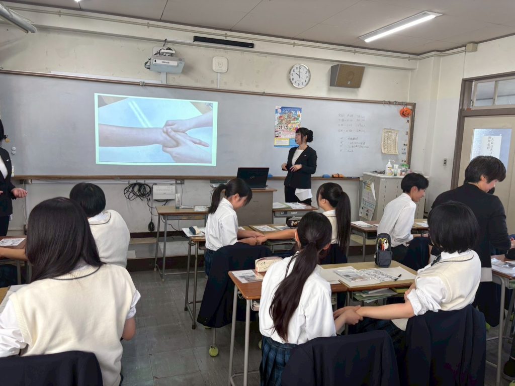 プチ体験!ということでハンドマッサージを生徒同士でやってもらいました!